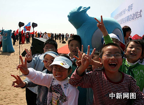 記者在現場看到,當地民眾載歌載舞,他們有的舞起長龍、有的打起腰鼓、有的更扭起歡快的秧歌,表達對2010年上海世博會的期盼心情和參與世博、奉獻世博、分享世博的美好愿望。而在世博會志愿者招募點前,報名和咨詢的人流如潮涌動,成了金山城市沙灘一道最亮的風景。
