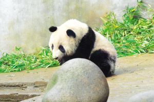 據介紹,“閩閩”出生于2008年9月3日晚,雌性,出生時體重102.8克,來上海時已長到35公斤。“閩閩”的媽媽叫“竹韻”,第一次做母親就產下了雙胞胎,“閩閩”是其中的妹妹。她尖嘴、臉較圓,最喜歡和人玩耍,經常爬在鐵欄上“深情”呼喚飼養員,是個典型的人來瘋。