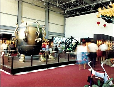 展廳的展出內(nèi)容以3條線為主。一是從火龍出水、一窩蜂等古代火器到長2捆等長城系列火箭。二是從指南針的發(fā)明到鄭和下西洋航海,中國的海上絲綢之路。三是活字印刷、造紙法、銅車馬、兵馬俑、地震儀、簡儀等中國古代文明與科技。