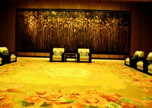 中國館60.6米層正中為金廳,在五行中,土居中,土色黃,黃色高級的境界是金,故此廳定位金色,主題以展示向日葵為主。