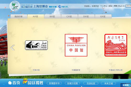 “網上世博護照”所用的展館印章與實體展館的基本一致。這些印章生動體現(xiàn)了各展館的特色,具有收藏價值,同時,網民還可以隨時查看已經收集的印章與尚未收集的印章,并可在論壇發(fā)帖,將自己收集的印章與網友分 享。