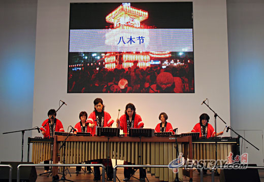 東方網(wǎng)記者向場上工作人員了解到,在日本產(chǎn)業(yè)館,每天都會上演四場音樂會,時間分別為11:00、13:30、16:00和18:30,諸多來自日本本土的專業(yè)級音樂團(tuán)體將為觀眾帶來風(fēng)格迥異的音樂節(jié)目,且每周都有不同的樂團(tuán)前來獻(xiàn)演。在這里,藝術(shù)家們將用或民族、或世界的樂器演奏中日等國的民族樂曲,而本周的節(jié)目將由日本著名的馬林巴樂團(tuán)“北星會”出演。