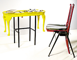 這張黃色桌子和紅色椅子是由舊桌椅改造而成的。美國設(shè)計師在舊椅子和桌子底部加上長長的黑色金屬腿,并為桌子和椅子配上亮麗的顏色。這樣一來,矮矮的桌子和椅子長高了,原本的四條腿變得不著地,不過卻因為這樣,看起來很特別。媒體在介紹這個設(shè)計時評價,這種舊物翻新的方式將傳統(tǒng)與現(xiàn)代相互結(jié)合,不僅創(chuàng)意獨特,而且節(jié)約了物資。