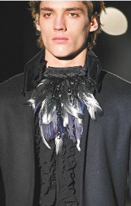 今年秋冬領片有短一截的趣味,斯文秀氣地輕松一掛,搭配蕾絲襯衫,在陰柔之中增加貴族氣息。象征自由意象的羽毛,秋冬出現的機率極高,不過最特別的算是串成頸飾,像項鏈一樣綁在頸邊,再加上珠鏈垂墜、細膩編織穿插,效果令人驚艷。
