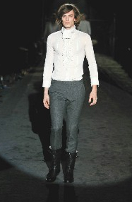 要表現貴公子獨特風味,垂墜在前襟最為妥當,或是嘗試把絲巾系在頸邊、手腕邊,也可以試試外繞在金屬腰帶上,或干脆讓絲巾隨著步伐在腰際擺動飄逸。絲巾質感輕柔,和秋冬大量出現的華麗搖滾有剛與柔、動與靜對應的美感,更加突顯秋冬流行潮流。