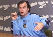不過,這似乎并不影響他的執教能力。正是在他的帶領下,阿根廷近年來向世人呈現了一場場精彩的攻勢足球。可以說,他瘋狂的3-3-3-1攻擊陣容,已經深入人心。對于2002年的世界杯目標,他的回答很簡單:不但要奪取世界杯,而且還要贏得好看。