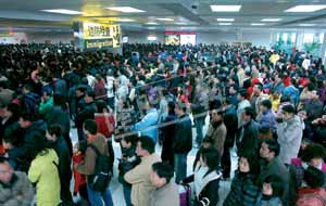 由于新春期間“自由行”旅客大幅增多至占總客流量四成一,內地居民過關又需透過民警人手查驗并加蓋驗迄章,耗時為驗放港澳旅客的三倍!白杂尚小甭每透叨燃,無疑為拱北口岸帶來空前的通關壓力,邊檢部門被迫利用口岸廣場蛇形通道分流密集人潮。在出境高峰期,開放所有出境通道,并加開臨時通道疏導客流,并加派民警為旅客提供指引、救助及咨詢等服務。
