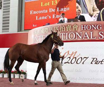 拍賣(mài)結(jié)束后,隨即進(jìn)行20匹配售新馬的抽簽配主儀式。這批兩歲馬每匹定價(jià)120萬(wàn)元。利達(dá)賢說(shuō):“馬主們對(duì)重新實(shí)行的配售新馬制度反應(yīng)良佳。因此,馬會(huì)決定來(lái)季將配售新馬名額增至25個(gè),然鑒于澳洲元及紐西蘭元已升值不少,每匹配售新馬的售價(jià)將調(diào)整為130萬(wàn)港元。”