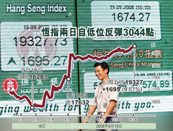 中新網9月22日電 據香港《文匯報》報道,美國政府的一連串救市措施,刺激道指上周五大漲368點,收于11388點。21日晚上,國家證監會又公布放松上市公司股票回購的管制,無疑為A股再注強心針。