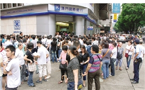中新網9月25日電 據澳門日報報道,美國金融海嘯引發的全球性信心危機開始波及港澳,香港東亞銀行、澳門國際銀行及永亨銀行24日均被謠傳財政困難而出現擠提。其中,國際銀行初步估計全日提款2至3億。