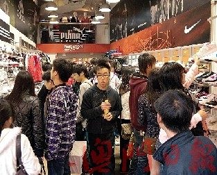現(xiàn)場(chǎng)觀察,平均每3分鐘賣出一對(duì)球鞋,但鞋店負(fù)責(zé)人表示,雖人流暢旺,上周六生意額更達(dá)5萬(wàn)左右,生意仍比去年少20%至30%。“去年收錢(qián)收到手軟,今年拿鞋拿到手軟!”顧客喜歡試鞋,卻未必購(gòu)買。以往更常見(jiàn)家庭客,一次購(gòu)買3、4雙鞋,今年顧客“一雙起、兩雙止”。