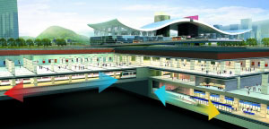 未來建設的廣深港客運專線的時速將達到300公里。福田車站建成后,從深圳中心區(qū)坐火車去香港九龍只需27分鐘,到廣州新客站只需要33分鐘,而在感受廣深港同城化的同時,乘客也將體驗到全國最大地下火車站的魅力。這是一座立體式的換乘樞紐,共分地下三層,最下面一層就是廣深港客運專線“D”字頭動車組所運行的軌道,而地下二層則與城市軌道交通接駁,其中福田火車站規(guī)劃接駁的設施包括軌道交通1號線、2號線、3號線、4號線、穗莞深城際線、公交、出租場站等,地下一層是供乘客進行換乘、購票、檢票等的樞紐,形成一個大型地下鐵路客運綜合站。
