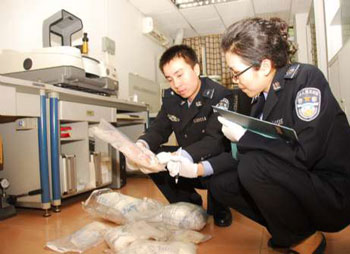 今年2月10日上午9時,緝私警員行動組埋伏藏毒窩點。因毒販住處加裝有防盜鐵門,強行破門或因延誤時間使毒販警覺而銷毀毒品。于是,緝私警察扮演修理下水道,當藏毒窩點房門打開,4名緝私警察便持槍而入,迅速制服5名毒販。經搜查,現場查獲白色粉狀物品一包,經鑒定為毒品氯胺酮,重約1公斤。