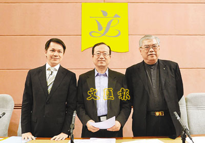香港民建聯計劃提出討論粵港兩地的海港機場的合作,以及改善空氣、水質治理等問題。圖為民建聯立法會議員陳鑒林、黃定光及陳克勤。(圖片來源:文匯報)