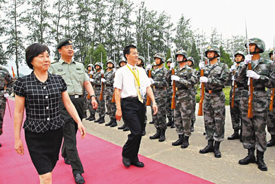 學員早上乘車到解放軍北京衛(wèi)戍區(qū)的軍營參觀,文匯報副社長兼未來之星同學會主席韓力在北京衛(wèi)戍區(qū)警衛(wèi)三師副師長朱繼明陪同下檢閱軍隊,之后兩人與北京衛(wèi)戍區(qū)警衛(wèi)三師副參謀長閆慶峰、北京衛(wèi)戍區(qū)警衛(wèi)三師十一團團長李永奎、北京衛(wèi)戍區(qū)外事處處長王普升等及一眾同學欣賞軍事表演。