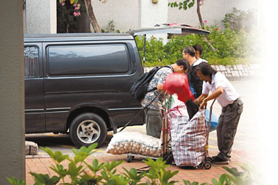 該報記者上周一連兩天在清晨6時許到羅湖口岸觀察,發(fā)現(xiàn)有大批水貨客利用手推車載運一袋袋貨品,沿途通行無阻,沒有關(guān)員查問水貨客。當(dāng)水貨客到達(dá)粉嶺,便將貨品交給停泊在粉嶺港鐵站外的貨車司機,由于部分尼龍袋沒有封口,記者發(fā)現(xiàn)里面載滿一棵棵菜心,還有青瓜、豆腐、雞蛋等副食品。