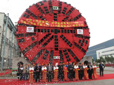 該機將在3個月后正式在深圳段投入隧道施工使用。據悉,這將是中國鐵路建設史上使用的最大直徑的盾構機器,預計深圳段盾構工程將于2012年貫通。