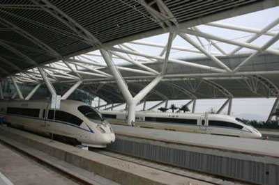 據(jù)悉,廣深港高鐵粵段全部采用由內(nèi)地最新自主研發(fā)的CRTSⅠ型板式無砟軌道,取代傳統(tǒng)鐵路的道砟和枕木,以保障這條高等級雙線電氣化鐵路設計速度目標值為線下部分350公里每小時,線上部分達250公里每小時以上,屆時從廣州到深圳僅需20多分鐘,再到香港西九龍只需16分鐘左右,這意味著由香港到廣州將由現(xiàn)時的100分鐘大幅減至40分鐘。