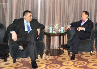 中新網3月4日電 據香港中通社報道,香港特區(qū)行政長官曾蔭權及澳門特區(qū)行政長官崔世安3日下午抵達北京后,兩人共進晚餐。曾蔭權及崔世安將列席5日全國人大會議開幕式。
