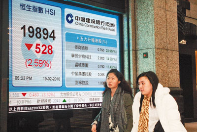 中新網(wǎng)2月20日電 據(jù)香港《文匯報(bào)》報(bào)道,美國突然調(diào)高貼現(xiàn)利率,市場擔(dān)心美國會(huì)提早退市及加息,港股急跌528點(diǎn),失守20000點(diǎn),跌幅達(dá)2.6%,是19日亞太區(qū)股市中表現(xiàn)最差的市場。香港地產(chǎn)股、內(nèi)銀股及資源股成為跌市重災(zāi)區(qū),成交淡靜只有430.7億元。