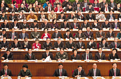 3日在主席臺就座的還有多名涉港澳臺事務(wù)高官,如港澳辦主任廖暉、全國政協(xié)港澳臺僑委員會副主任陳佐洱、海協(xié)會會長陳云林、澳門中聯(lián)辦副主任徐澤等,他們?nèi)谈┦卓粗鴪?bào)告認(rèn)真研讀,并不時(shí)拿筆寫寫畫畫,相當(dāng)用心。