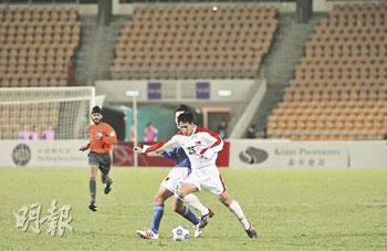 東亞運足球賽2日舉行首場初賽,約4000人入場,入座率約30%,部分觀眾席渺無一人。最后藍色球衣的日本隊2比1勝朝鮮。(圖片來源:香港明報)