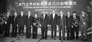 澳門社會知名人士何鴻燊、曹其真,以及呂志和基金有限公司、澳門霍英東基金會分別向澳大發展基金會捐款3000萬澳門元,款項將作為基金會的永久性基金,由基金會管理,并僅作支持澳大發展之用。除前立法會主席曹其真親自捐贈外,澳門博彩股份有限公司董事蘇樹輝代表何鴻燊,呂志和之子呂耀東代表呂志和基金有限公司,澳門霍英東基金會主席霍震寰代表該基金會向澳大捐贈有關款項。