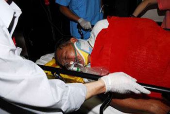 鐘×勝被高爾夫球車壓著,奄奄一息,其余各人除司機(jī)外也受傷,眾人驚魂剛定后實(shí)時(shí)進(jìn)行搶救,但4人未能移動車身,只好轉(zhuǎn)向球場控制中心求助,職員接報(bào)趕往協(xié)助救援。鐘×勝面色轉(zhuǎn)白氣弱游絲,稱胸部好痛,大家擔(dān)心他可能是內(nèi)傷出血。