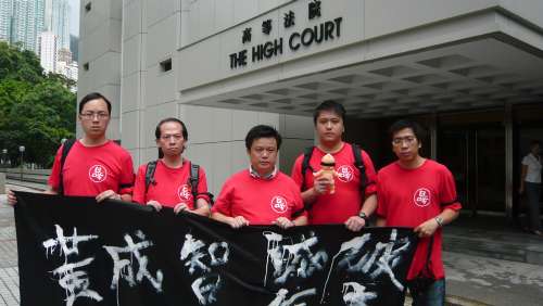 “監察立法會議員誠信關注組”要求法官拒絕黃成智的豁免申請,響應市民訴求。圖片來源:大公報