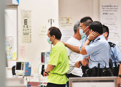 在沙田隔田村被捕毒販報稱不適由警員押送醫院檢查。(圖片來源:文匯報)