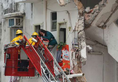 同樣是住在塌樓現場毗鄰危樓的王先生,從事裝修工程,同樣被這驚天場面嚇至目定口呆,事后仍全身發抖,只能由聞訊趕往助援的同事,簡述逃命經過。