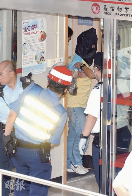 警方沖鋒隊接報趕至盛安樓,帶備盾牌及警棍包圍辦事處,高聲喝令疑兇棄刀投降,疑兇最后在全無反抗下被按倒地上制服鎖起拘捕。