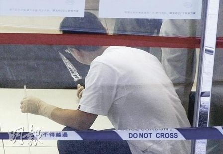 狂漢連襲3人后走出盛國樓,繼續手握染血軍刀走到20多米外的盛安樓,直闖地下嘉怡物業管理有限公司辦事處,向兩名管業主任施襲,當中郭×基身中多刀浴血,梁×宗被砍傷手。據悉,當時辦事處內多名職員目睹斬人經過,嚇得魂飛魄散,更有女職員痛哭。血洗辦事處后,疑兇似全無逃走之意,手執血刀走出門外抽煙及念念有詞。