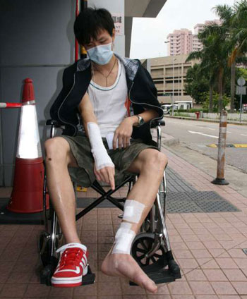 無辜遭殃的裝修工人名梁×德(28歲),左小腿及右手腕皆被腐蝕性液體濺中受傷,經送院診治,初步確實屬三級灼傷,治療后幸無大礙已出院。消息稱,當時他戴著耳筒聽音樂,聽不到同事大叫及避走四散,以致受傷。