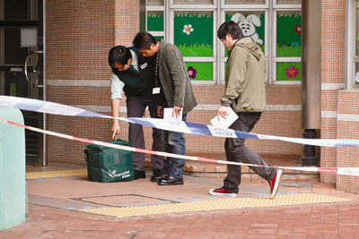 大廈42歲女保安員驚聞劫案立即報警,并取水為二人沖洗眼睛。事后她報稱吸入類似噴發膠氣味不適,需與2名事主一同送院。