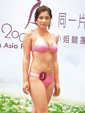 中新網(wǎng)10月15日電 據(jù)香港《文匯報(bào)》報(bào)道,2009年亞洲小姐選舉候選佳麗14日在香港荃灣一間酒店以泳裝在池畔與傳媒見面,但2號(hào)王希瑤患上氣管炎缺席,只有18位佳麗亮相。大會(huì)安排佳麗穿上比基尼泳裝,各佳麗身裁都顯得突出。