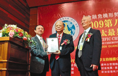 中新網8月4日電 據香港《文匯報》報道,原全國人大常委、香港金利來集團董事局主席曾憲梓,日前出席2009第八屆亞太華商領袖論壇暨亞太最具社會責任感華商領袖頒獎盛典,并獲大會頒發最具責任感華商領袖大獎。