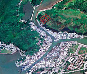 圖:大澳擬修復的鹽田位置(紅框部分)。(圖片來源:大公報)