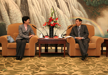 香港發展局局長林鄭月娥與上海市副市長楊雄會面。