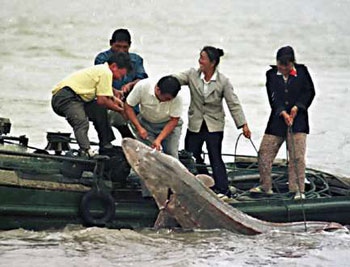 本月16日國家農業部相關官員、香港海洋公園相關管理人員到廈門中華鱘繁育保護基地遴選中華鱘。目前廈門的2尾中華鱘已經選定,它們身長各2米,健康、結實。