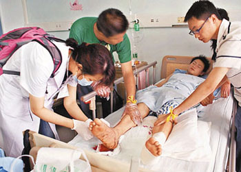 梁國穗說太太很理解他,全力支持他來四川救助災區(qū)傷員,“太太很惦記,每天都會打電話來。”一直埋頭在手術(shù)臺上的梁國穗,沒有時間看電視了解災情,甚至連成都鬧余震的事都不知道。“昨天太太來電話讓我注意安全時,才知道余震的事。但我們都說,只要在手術(shù)臺上,即使再大的余震,也要堅持到底,絕不能置患者于不顧。”