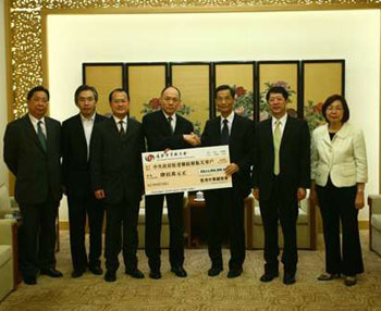 香港中華總商會繼在災后第一時間送交100萬善款予受災群眾后,22日再次來到中聯辦,總商會會長霍震寰表示,希望能將追加的300萬港幣善款用于幫助災區民眾重建家園,度過難關。