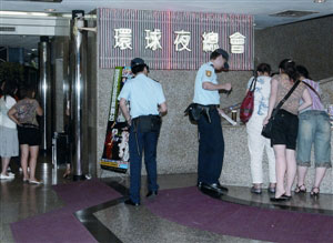 圖:旅客投訴被收澳門威尼斯人“入場費”,警員到場了解情況。(圖片來源:澳門日報)