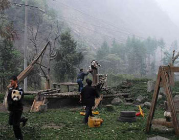在此次地震中,四川臥龍保護區管理局的房舍嚴重受損。(圖片來源:大公報)