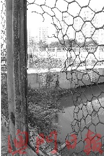 鴨涌河近發電廠后有圍網破爛待修。(圖片來源:澳門日報)