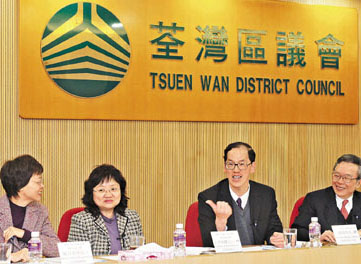 香港民政事務局局長曾德成22日在尤曾家麗、民政事務總署署長陳甘美華陪同下,出席荃灣與西貢區議會會議,聽取新一屆區議會的意見。