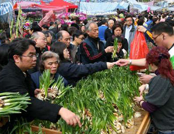 市民陳先生以888元購入好意頭年花“串串金”,他說:“今年經(jīng)濟好,加上早前股市有斬獲,新年花錢都不會太計較,希望來年有錢大家賺,社會少點爭拗。”
