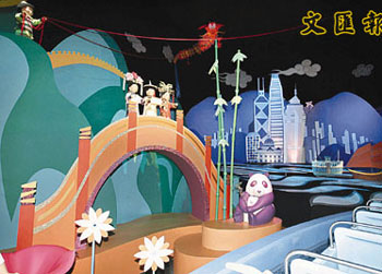 圖:“小小世界”中的香港區及內地區連在一起,中間放置了熊貓玩偶。(圖片來源:文匯報)