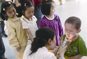 中新網5月6日電 據澳門日報報道,澳門早前爆發手足口病的同善堂第二托兒所證實再有4名幼兒受感染,累積有11名幼兒感染手足口病,8人為同班,所有病童已接受治療及病情輕微。