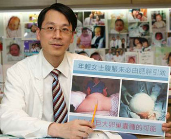 像王小姐的個案并不罕見。香港婦產專科醫生盧兆輝說,以他3、4年前在東區醫院的經驗,每周也有4宗個案,一年約有200至250宗個案,不過未必每名患者的囊腫皆如此巨大,一般個案的囊腫直徑約10至20厘米。
